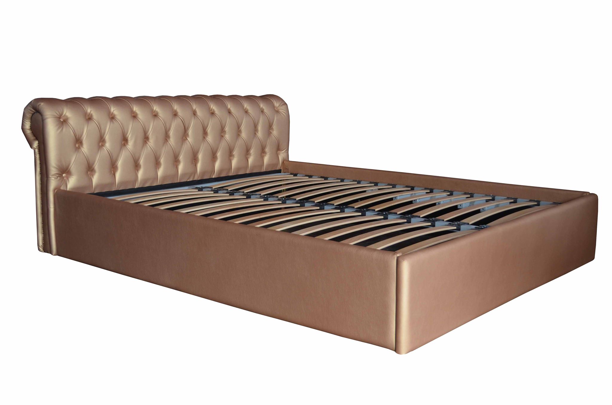 Pat tapitat, cu capatai capitonat. Material de acoperire - imitatie de piele bronz - lux.