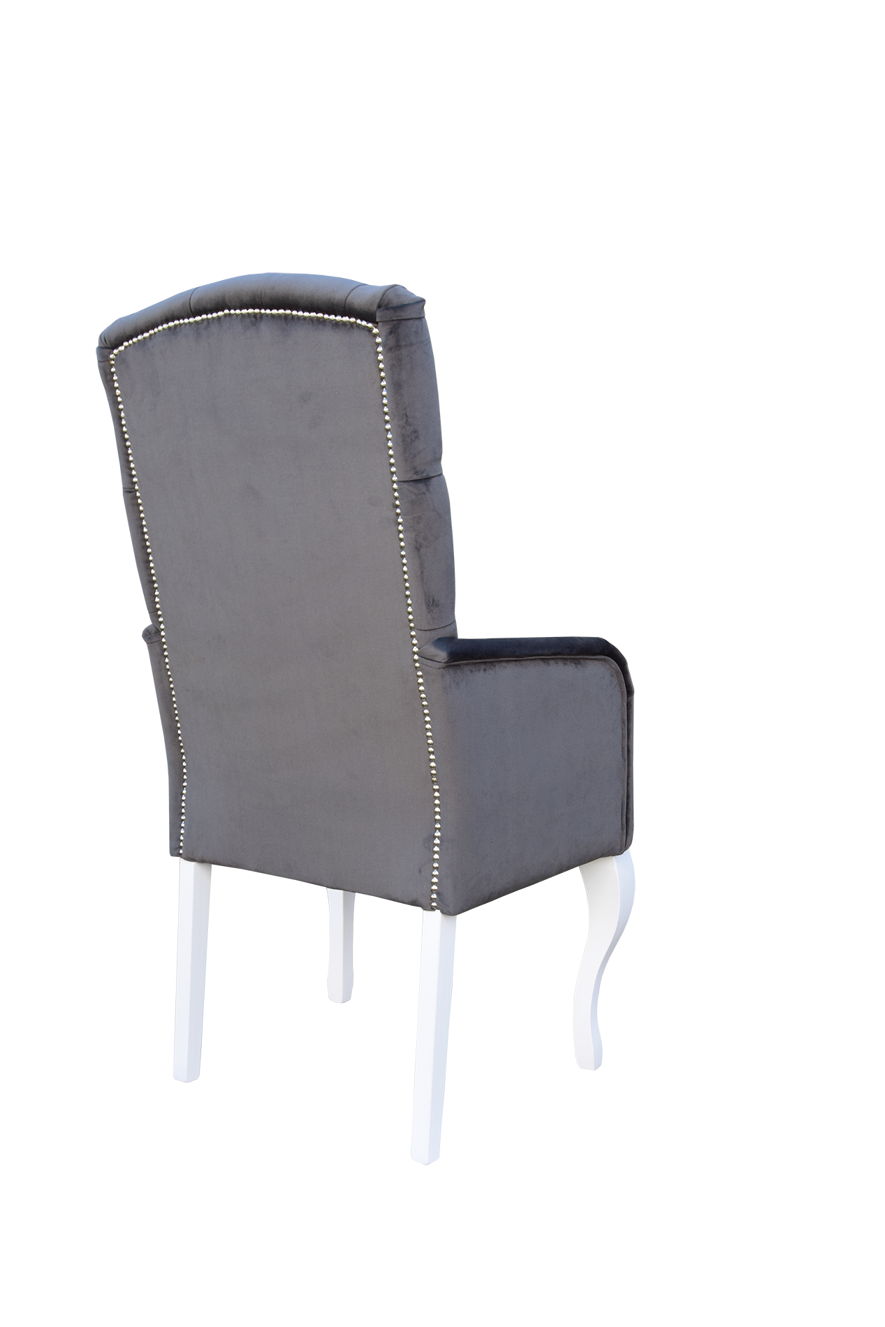 Fotoliu realizat pe structura de fag, tapitat cu catifea gri, capitonat cu nasturi imbracati.