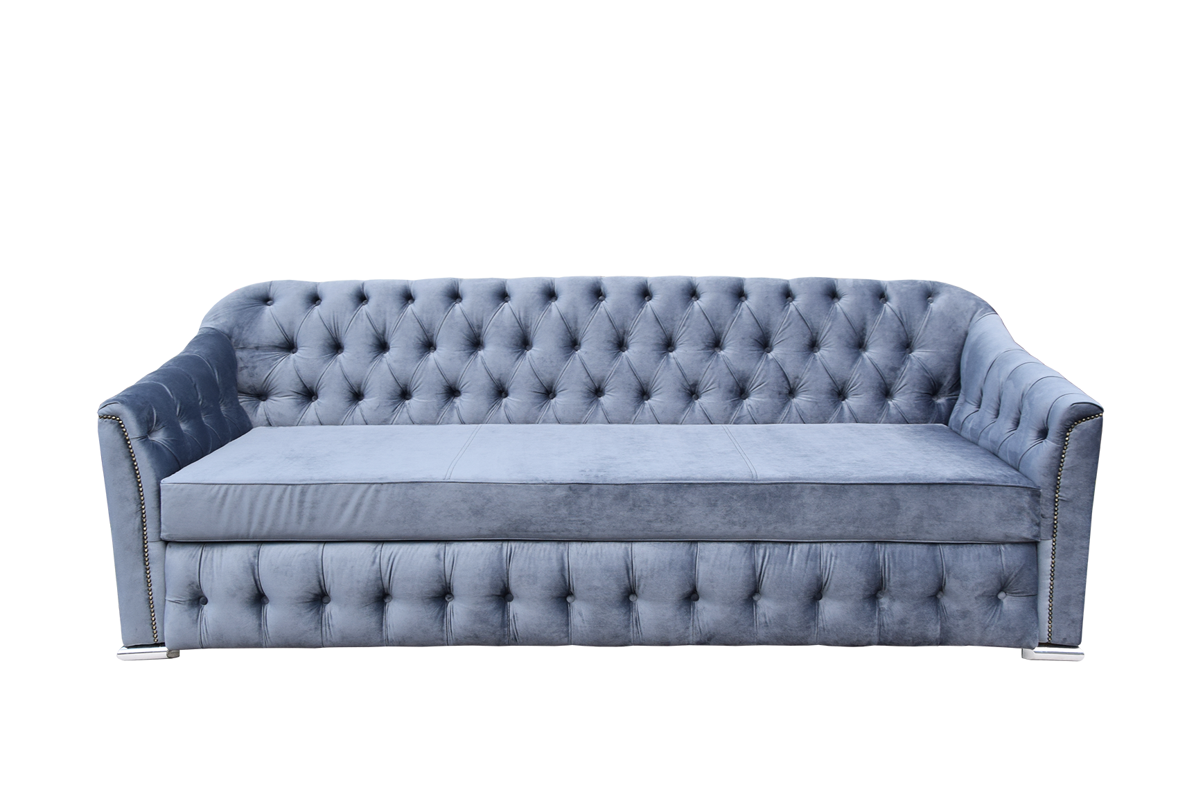 Canapea de 3 locuri, extensibila, capitonata, realizata pe structura de fag.